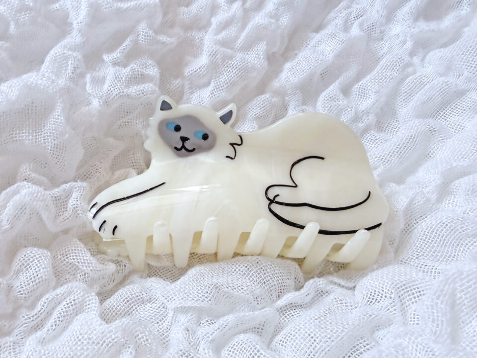最近のお気に入り、猫型のヘアクリップ。これをつけてお店に入ると店員さんに「えっ、それ、猫ですか!?」と声をかけられることがあり、そのたびに「そうなんです、可愛いですよね、エヘヘ」となっています。
