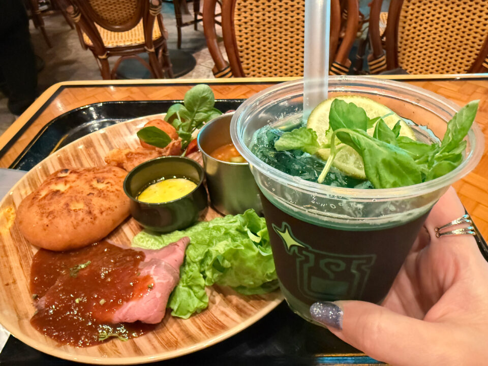 やわらかなローストビーフやブルーチーズのソースが添えられたフォカッチャなど、どれも濃厚で本格的な味わい。キウイと紫蘇の「回復薬グレート」のさわやかさが、これまたクセになるんだ!