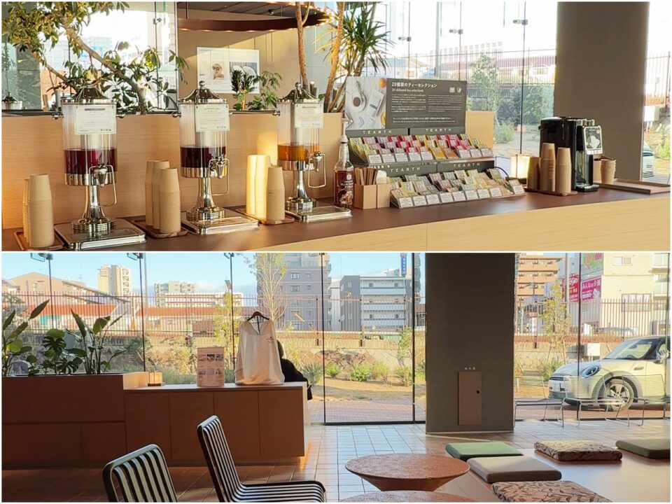 大はしゃぎして、気がつけば喉がカラッカラ。ロビーでウェルカムサービスのお茶をいただきました。海側とはまた違う開放感があって、こちらもまた居心地が良かった。