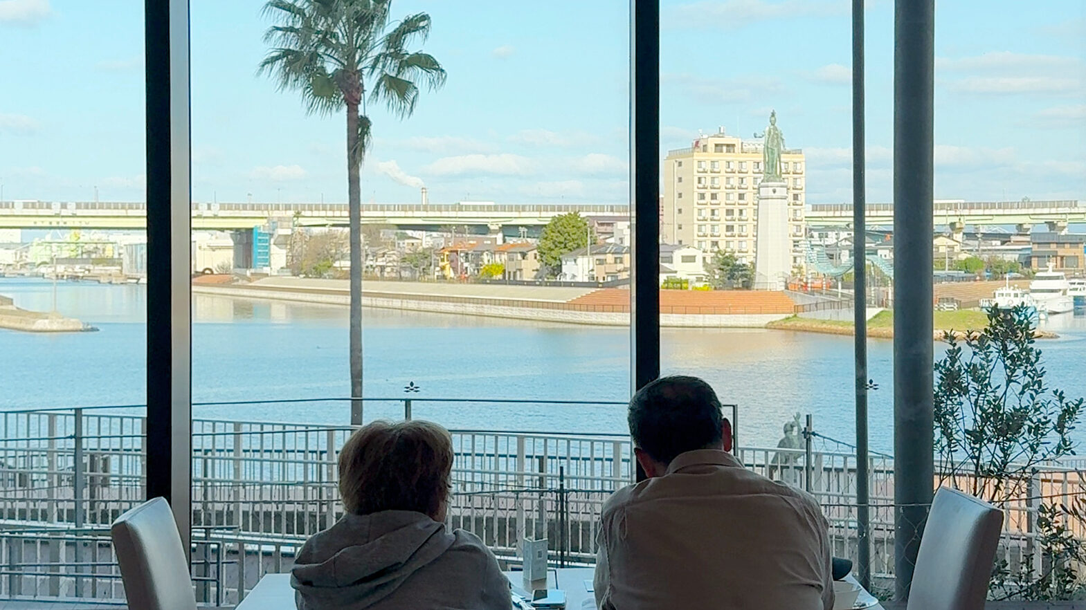 堺旧港を臨む位置に佇むホテルは外観もスタイリッシュで美しいのですが、ホテルの目の前に広がる景色がなんともビューティホー! 訪れた我々はどちらも関西生まれ関西育ちなのですが、堺がこんな港町とは知りませんでした。