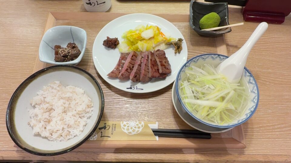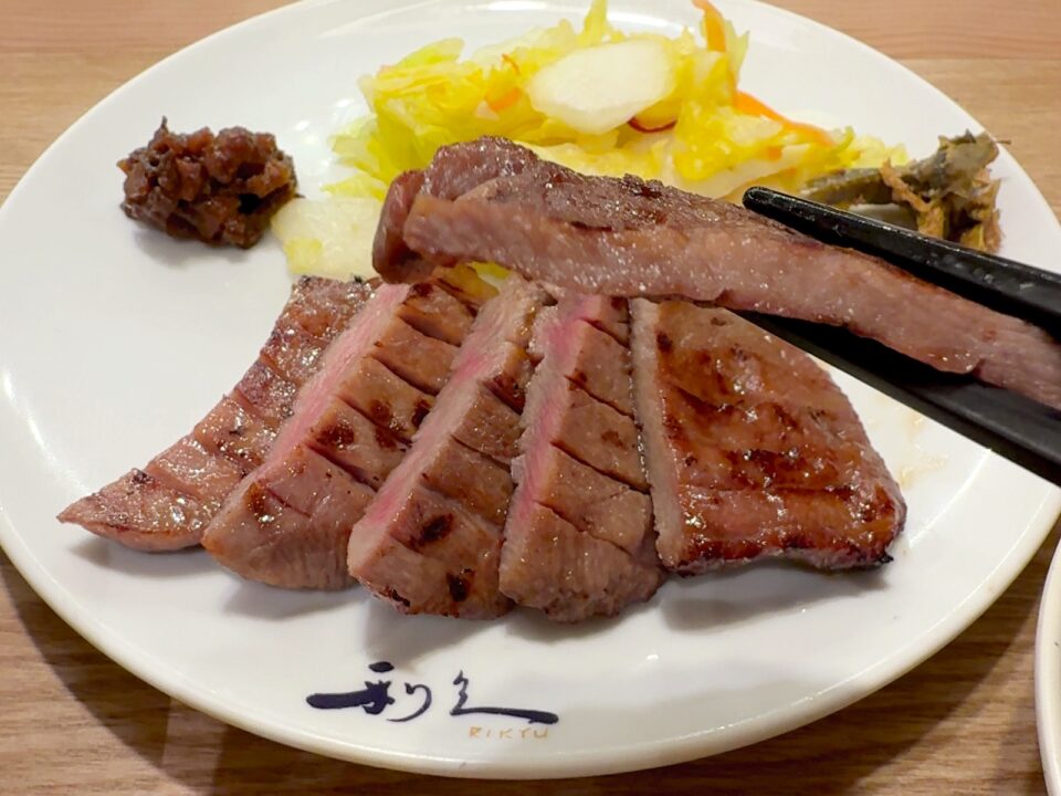 そして最後に、仙台といえばパート3・牛タン!駅構内「牛たん通り」にある「牛たん炭焼 利久 仙台駅店」で、牛たん定食(3枚6切、2,761円)をいただきました。