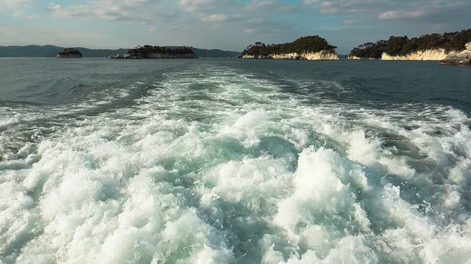 最後は遊覧船で湾内一周(1,100円〜)。船内アナウンスでずっと島の名前やうんちくを教えてくれるので、約50分の乗船があっという間でした。デッキにも出られますが、結構波しぶきがかかるのでその点だけご注意を。